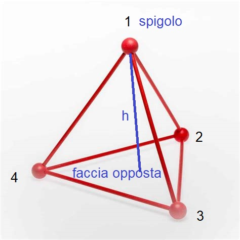La figura mostra due tetraedri sovrapposti, che combaciano con una faccia, essi comprendono l’intera altezza del tetraedro maggiore, cioè il tetraedro di lato massimo, contenuto dalla sfera.