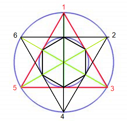 Numerando da 1 a 6 i punti avremo due Triangoli regolari (equilateri) 1-3-5 e 2-4-6 di Lato massimo.