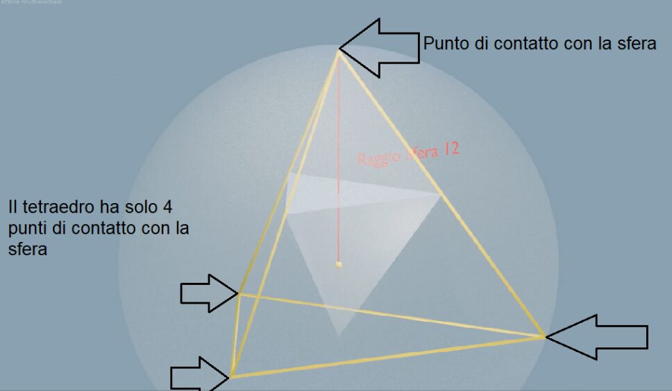 La sfera, la superficie della sfera di raggio 12 è la superficie su cui poggiano i 4 tetraedrini, come detto, è qualcosa di voluto.