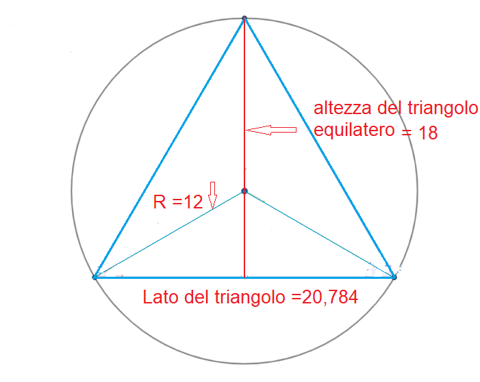 20,784 = lato del triangolo disegnato nella circonferenza di raggio 12