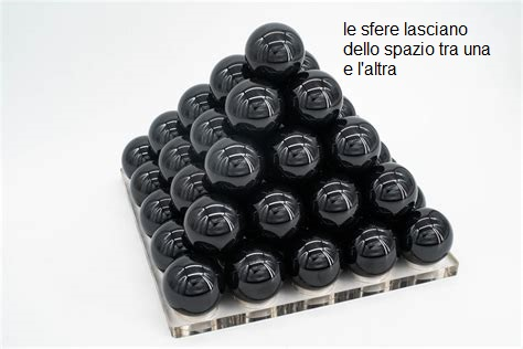 E’ intuitivamente comprensibile, le sfere non riempiono lo spazio, messe ammucchiate lasciano spazio tra sfera e sfera…