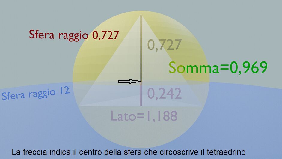 Anche il tetraedrino è contenuto da una sfera… Il centro della sfera che contiene il tetraedrino E’ SULLA SUPERFICIE DELLA SFERA DI RAGGIO 12.