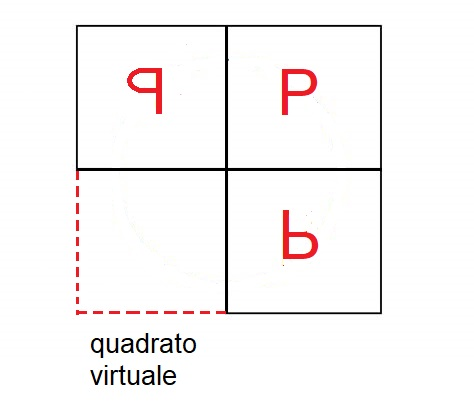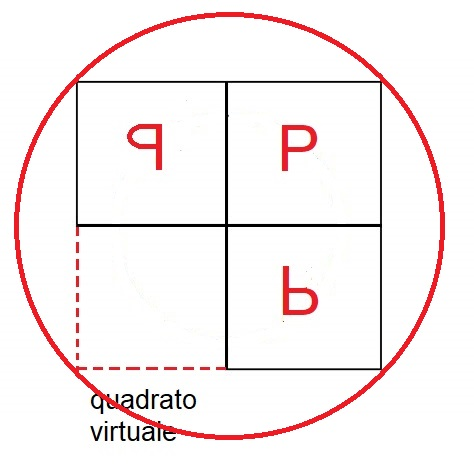 Il quadrato virtuale in basso a sx è il prodotto del quadrato in alto a destra e contiene il programma sinistra/destra (in alto a sinistra) e il sopra/sotto (in basso a destra).