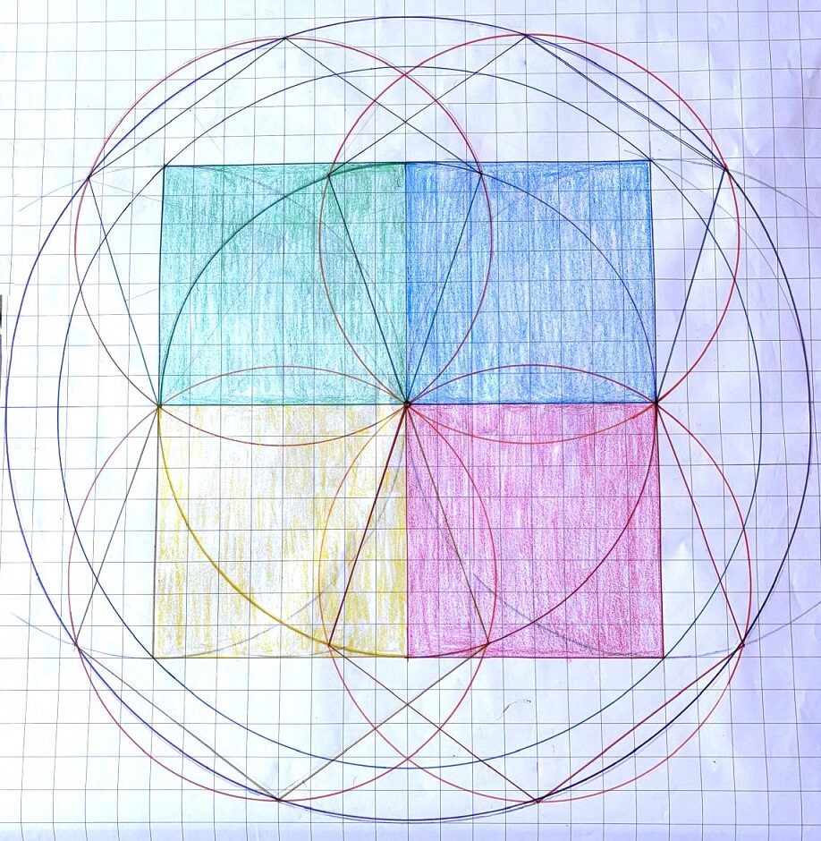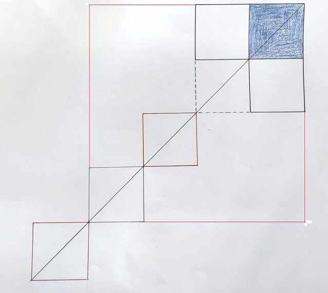 Poichè la diagonale del quadrato è il “Raggio del cerchio che contiene i tre quadrati e i quadrato virtuale”, la “cometa” ha la “coda in diagonale.