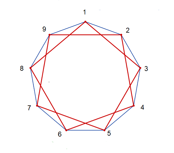 Nell’articolo 693 è stata mostrato un ennagono, cioè un nonagono con le diagonali, tuttavia esiste anche un altro tipo di percorrenza, questo: